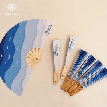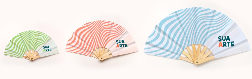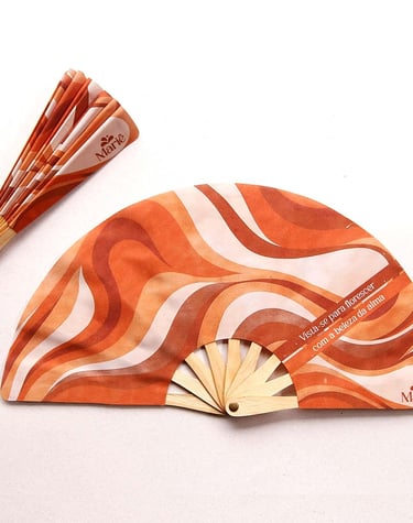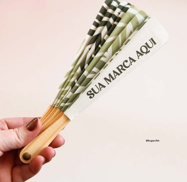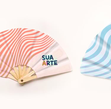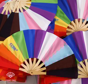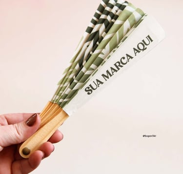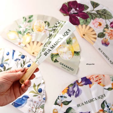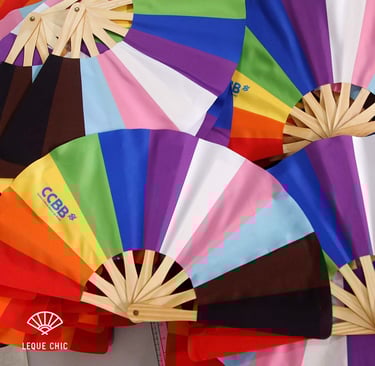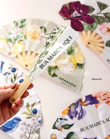 Oferecemos leques de tecido personalizados para eventos corporativos, brindes e ações promocionais, com foco em sofisticação e impacto de marca.